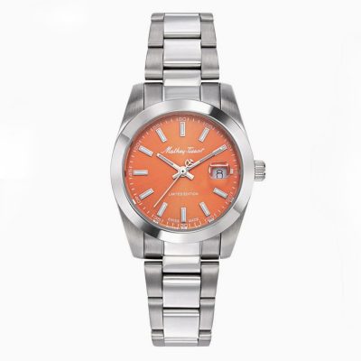 مناسب برای: ‌خانم ها اصالت برند: سوئیس موتور (موومنت): کوارتز عملکرد پایه: ۳ عقربه گارانتی: سه ساله دیجیران سرویس قاب، بزل و صفحه جنس قاب (بدنه): استیل ضدزنگ جنس شیشه: کریستال سافایر قطر قاب (mm): 30 ضخامت قاب (mm): 10 جنس بزل: استیل ضدزنگ رنگ صفحه: نارنجی بند: استیل ۳۱۶ ضدزنگ رنگ بند: سیلور امکانات: مقاومت در برابر آب تا ۵۰ متر نمایش تاریخ اندکس شب نما